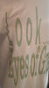 Cotton/Polyesther blend Unisex Sand color Gildan 8000 T-shirt with olive green screen printed graphic "Look with Eyes of Grace".