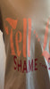 Cotton/Polyester blend Unisex Heather Light Blue Bella Canvas 3001 CVC T-shirt with pink/purple screen printed graphic "Tell the Lord, Shame the Devil".